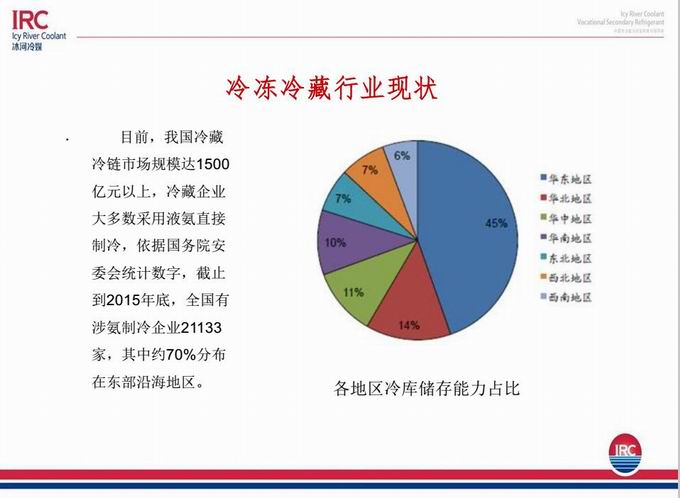 2016年9月23日上午,白松泉董事長在南京維景國際大酒店冷鏈裝備與技術(shù)專題研討會(huì)上分享了冷庫建設(shè)與改造優(yōu)化解決方案,并向各位同仁推廣介紹一種新型載冷劑---冰河冷媒!