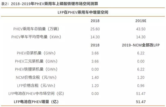 LFP在PHEV乘用車市場(chǎng)空間分析