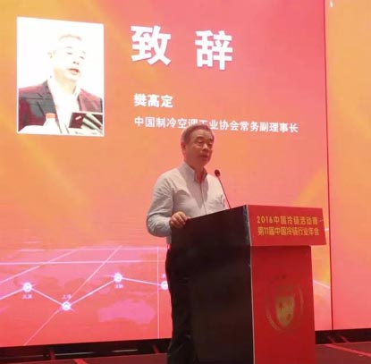 中國(guó)制冷空調(diào)工業(yè)協(xié)會(huì)常務(wù)副理事長(zhǎng)樊高定為大會(huì)開幕致辭。