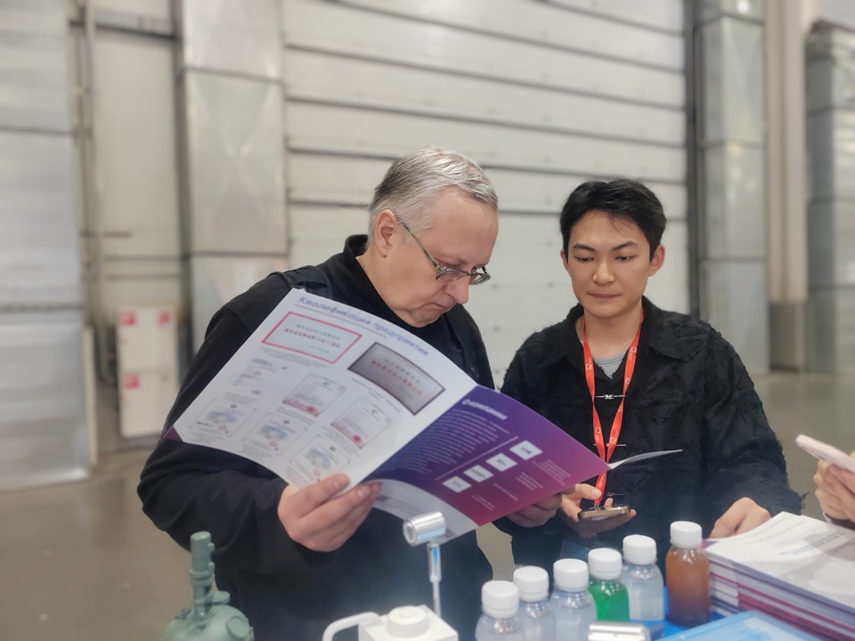 展會(huì)期間,冰河冷媒憑借低冰點(diǎn)、高導(dǎo)熱性、化學(xué)穩(wěn)定性強(qiáng)的產(chǎn)品優(yōu)勢(shì),以及無腐蝕、寬溫域、環(huán)保安全的核心特性,成功吸引眾多俄羅斯及東歐制藥企業(yè)駐足咨詢,團(tuán)隊(duì)人員針對(duì)合成控溫、低溫保存、精準(zhǔn)溫控等應(yīng)用場(chǎng)景,提供定制化技術(shù)解答,充分展現(xiàn)產(chǎn)品在解決傳統(tǒng)載冷劑腐蝕設(shè)備、效能低下等痛點(diǎn)上的顯著成效,助力制藥企業(yè)實(shí)現(xiàn)降本增效與合規(guī)生產(chǎn)的雙重目標(biāo)。